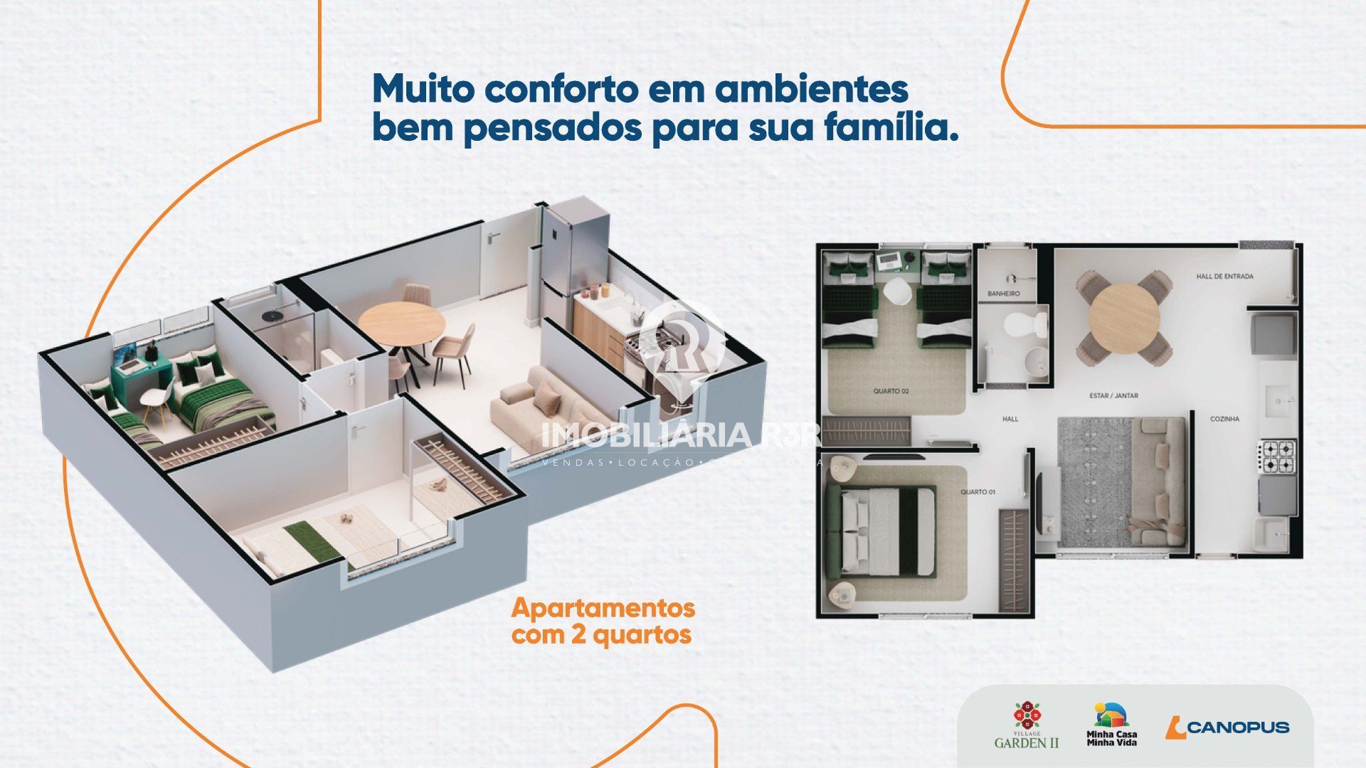 02 Quartos 01 Banheiro 01 Vaga